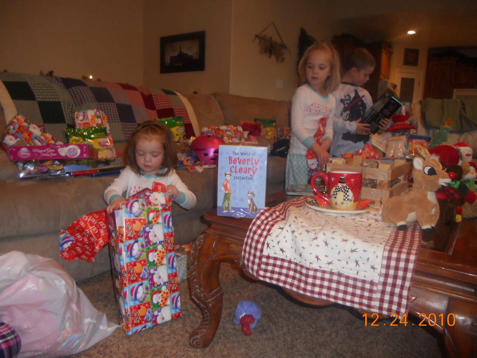 So I have decided that I can never get a really good picture of the four of them. There is always at least one not cooperating, so this is the best I could do in there new church clothes. They really did look cute. We had a really good Christmas, Santa spoiled us like he always does. Hope you all had a very Merry Christmas!
